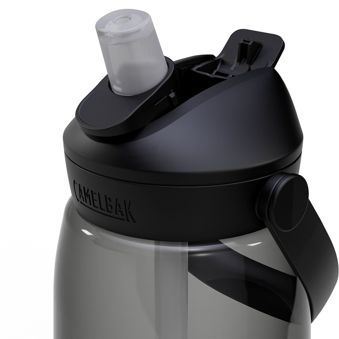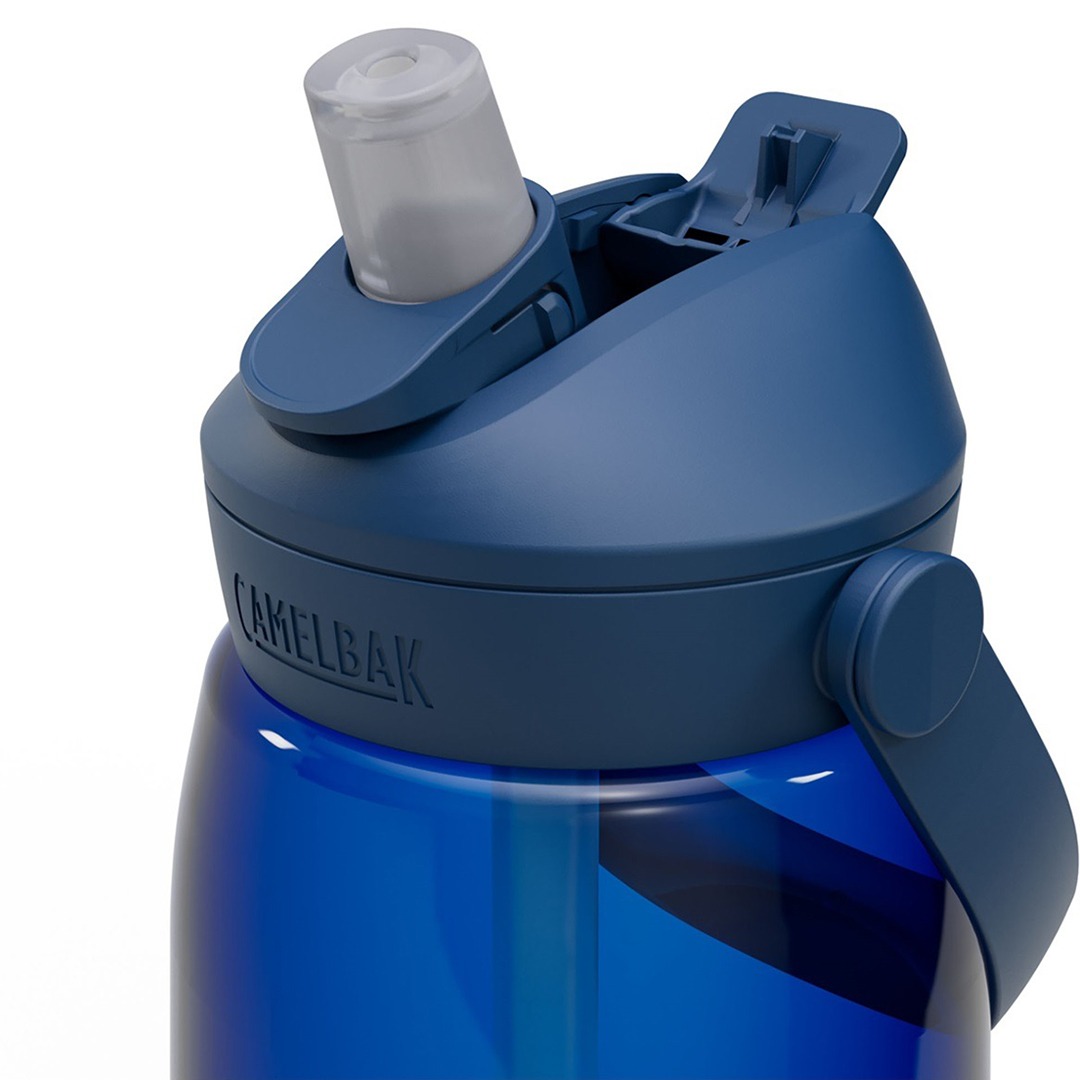 De CamelBak Thrive Flip Straw is een BPA-vrije drinkfles met een inhoud van 1 liter en is voorzien van een handig handvat en inklapbaar, siliconen bijtventiel. Door zachtjes op dit ventiel te bijten kun je de vloeistof via het verbonden rietje omhoog zuigen. Je hoeft de fles dus niet te kantelen tijdens het drinken en ook als je de fles laat (om)vallen komt de vloeistof er niet uit. Zodra je klaar bent met drinken klap je het ventiel weer in, waardoor het geheel beschermd wordt tegen stof en andere viezigheid.