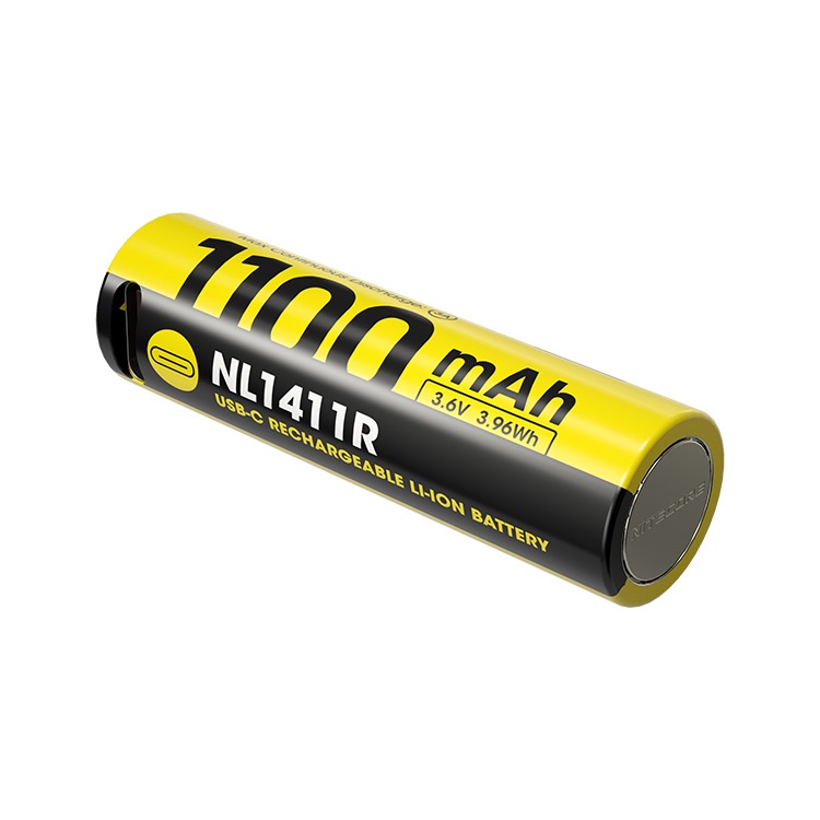 De Nitecore NL1411R is een oplaadbare 14500 Li-Ion batterij met een indrukwekkende capaciteit van 1.100 mAh. De batterij is voorzien van een USB-C-oplaadpoort zodat je hem gemakkelijk met een kabel (niet inbegrepen) kunt opladen.