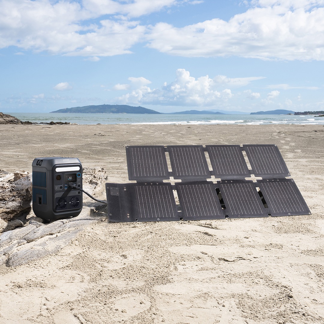 Het opladen van de Power Station kan op een wandstopcontact, maar natuurlijk ook met een zonnepaneel. Combineer de C300X met 1 × 60W paneel (bestel hier als bundel) als je 'm binnen een halve dag met zonne-energie wil kunnen opladen!