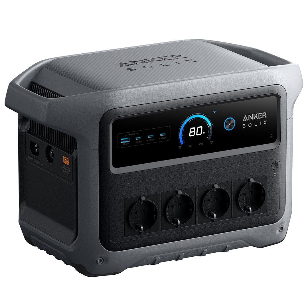De Anker SOLIX C1000 Gen 2 is een krachtige Power Station met een capaciteit van 1.024 Wh en een vermogen van 2.000 W. Met de 9 uitgangen (o.a. 4 × stopcontacten en diverse USB-poorten) kun je jouw apparaten, van mobiele telefoon tot koelkast, van stroom (blijven) voorzien op plekken waar geen netstroom beschikbaar is of als de stroom is uitgevallen.