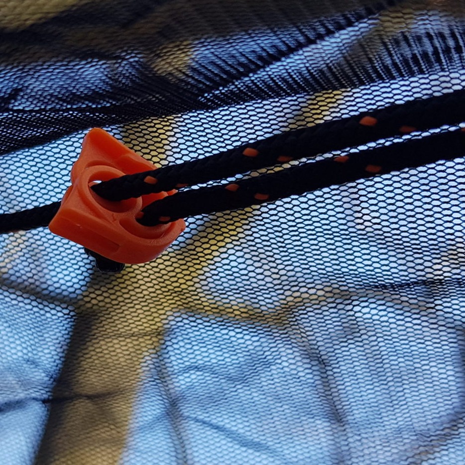 Het belangrijkste onderdeel is het gaas dat is ontworpen om een hangmat of matras strak in te pakken. Dicht gaas met een gaatjes diameter van 0,7 mm garandeert volledige veiligheid, niet alleen tegen muggen, teken en wormen, maar zelfs tegen "blackflies", midges, knutten, dansmuggen en Thaumaleidae. Gaatjes diameter - 0,7 mm - dit betekent 196 gaatjes per vierkante centimer.