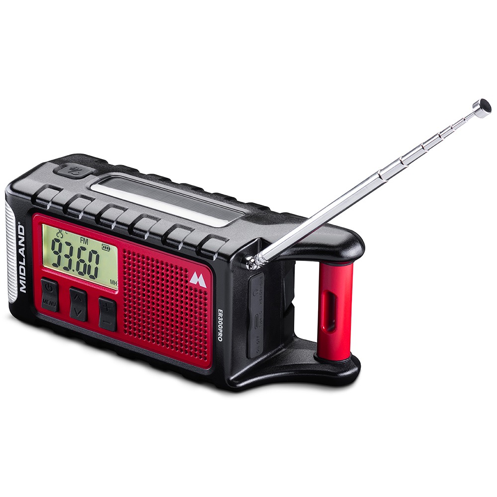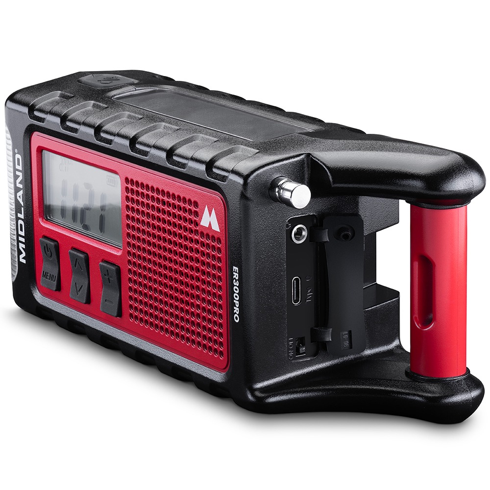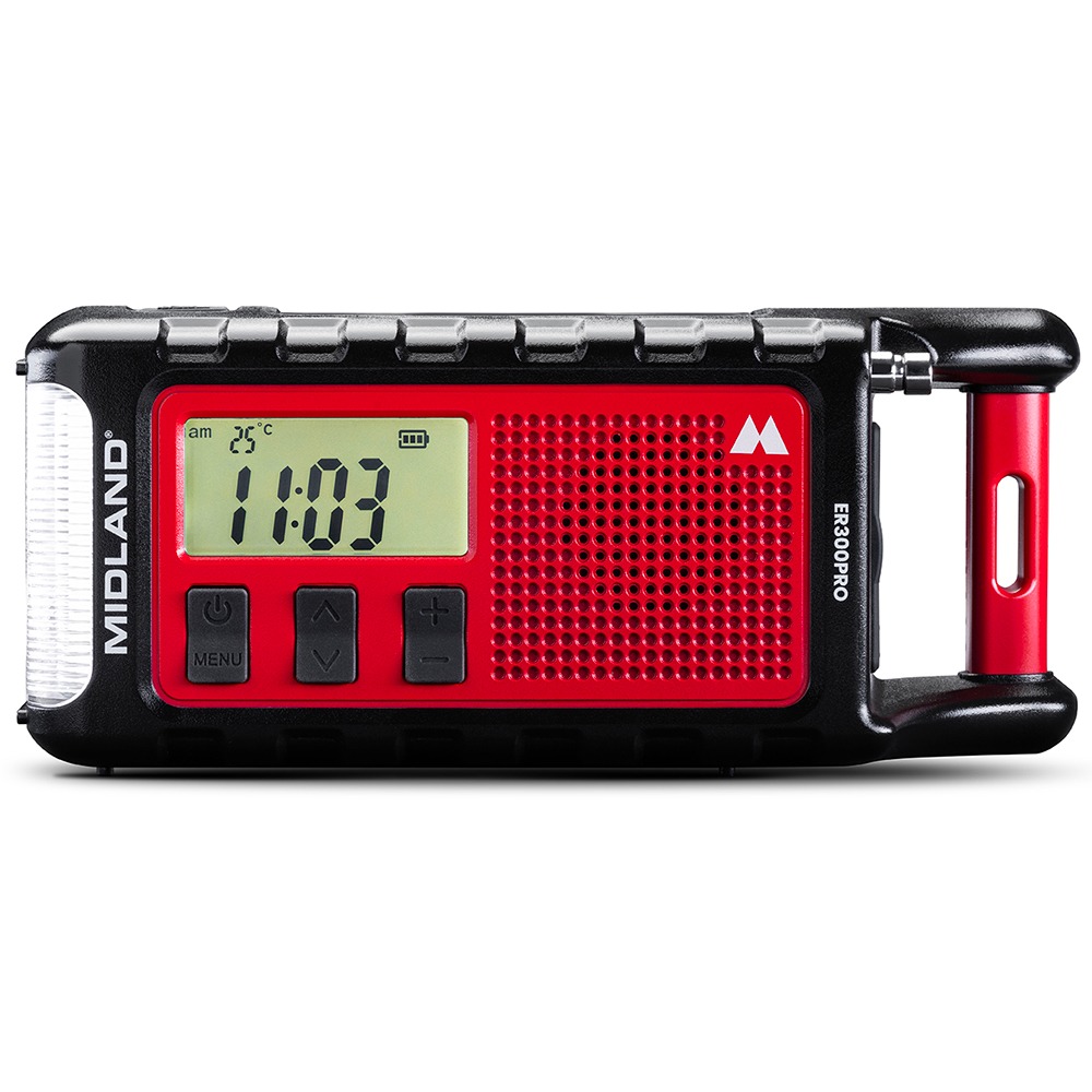 De Midland ER300 Pro is een multifunctionele Bluetooth noodradio en zaklamp, die je met zijn gevoelige FM- (wat in Nederland minimaal tot 2035 in de lucht blijft) en AM-ontvanger altijd op de hoogte houdt van het laatste nieuws.